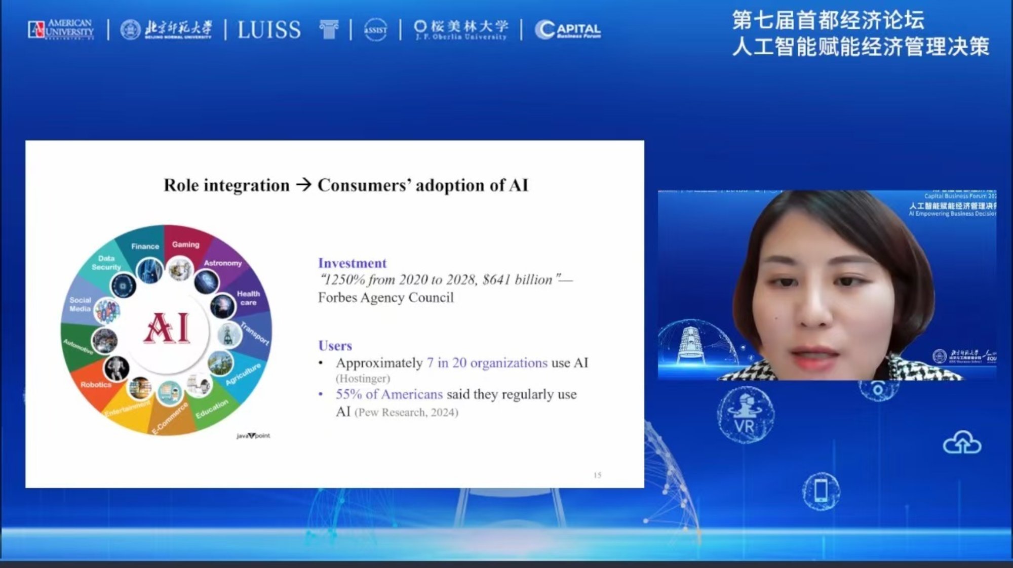 北师大经济与工商管理成人视频 助理教授王雪以“Boundary Theory and AI: How Role Integration Affects Consumer AI Adoption”为题,围绕着普通人在生活中所扮演的不同角色,以及每个人对不同角色整合水平的高低是如何影响他们的消费行为,尤其是如何影响他们对新技术的接受程度而展开。为我们理解AI的选择提供了一个全新的视角。