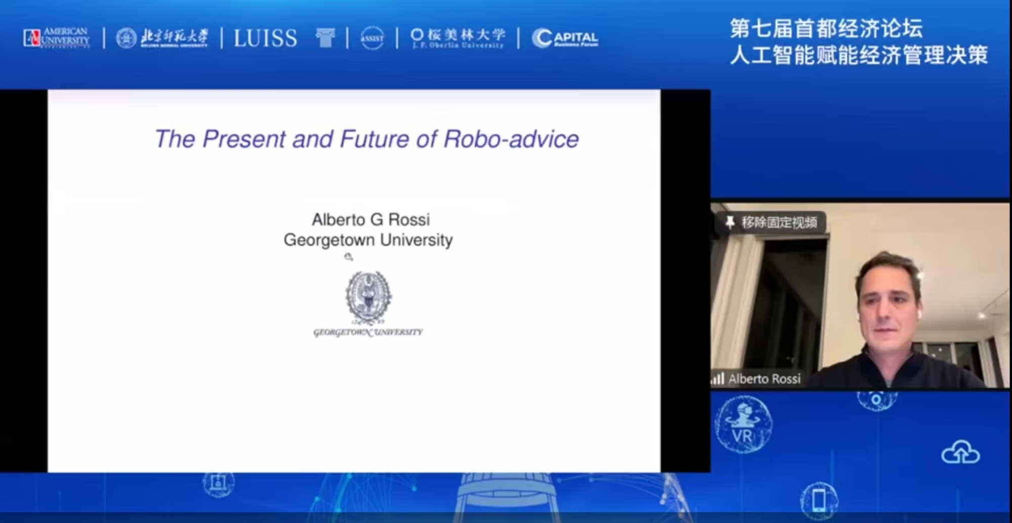美国乔治城大学科罗拉多商成人视频 金融学教授阿尔贝托·罗西以“The Present and Future of Robo-advice”为题,围绕着机器人投资顾问的过去、现在、未来,以及高级分析技术怎样解决金融领域以及决策过程当中的问题而展开。