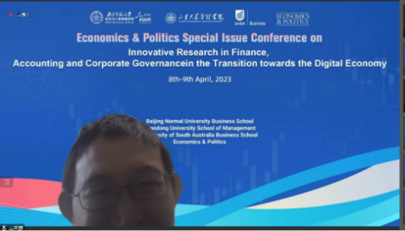 In order to further promote research innovation in finance, accounting and corporate governance in the transition of digital economy, select excellent research papers, build an international academic exchange platform and organize academic journal resources, the themed meeting co-sponsored by BNUBS, School of Management of Shandong University, School of Business of University of South Australia and Economics & politics, was successfully held on April 8-9, 2023. Nearly 100 experts and scholars from home and abroad attended the conference.