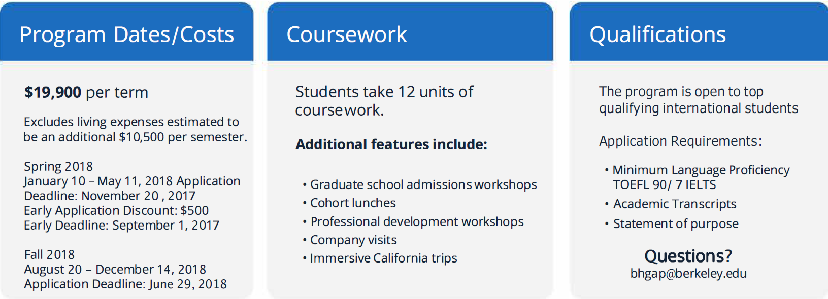 的顶级教授、课程和人际网络资源。在整个项目期间,学生将享有与UC Berkeley常规学生一样的权利,包括使用校内图书馆和各类设施。