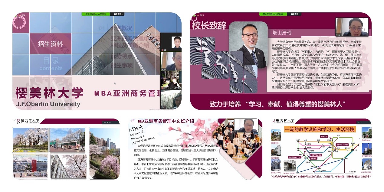 接下来,MBA亚洲商务管理“2+1”双学位项目负责人任云教授,从樱美林大学概况、亚洲商务管理中文版课程及学制、项目优势特点和招生事项四个方面进行介绍和说明,并通过视频方式与参会师生分享了樱花盛开的美丽校园、高水平的教学团队,以及丰富的企业实践和学术交流项目。