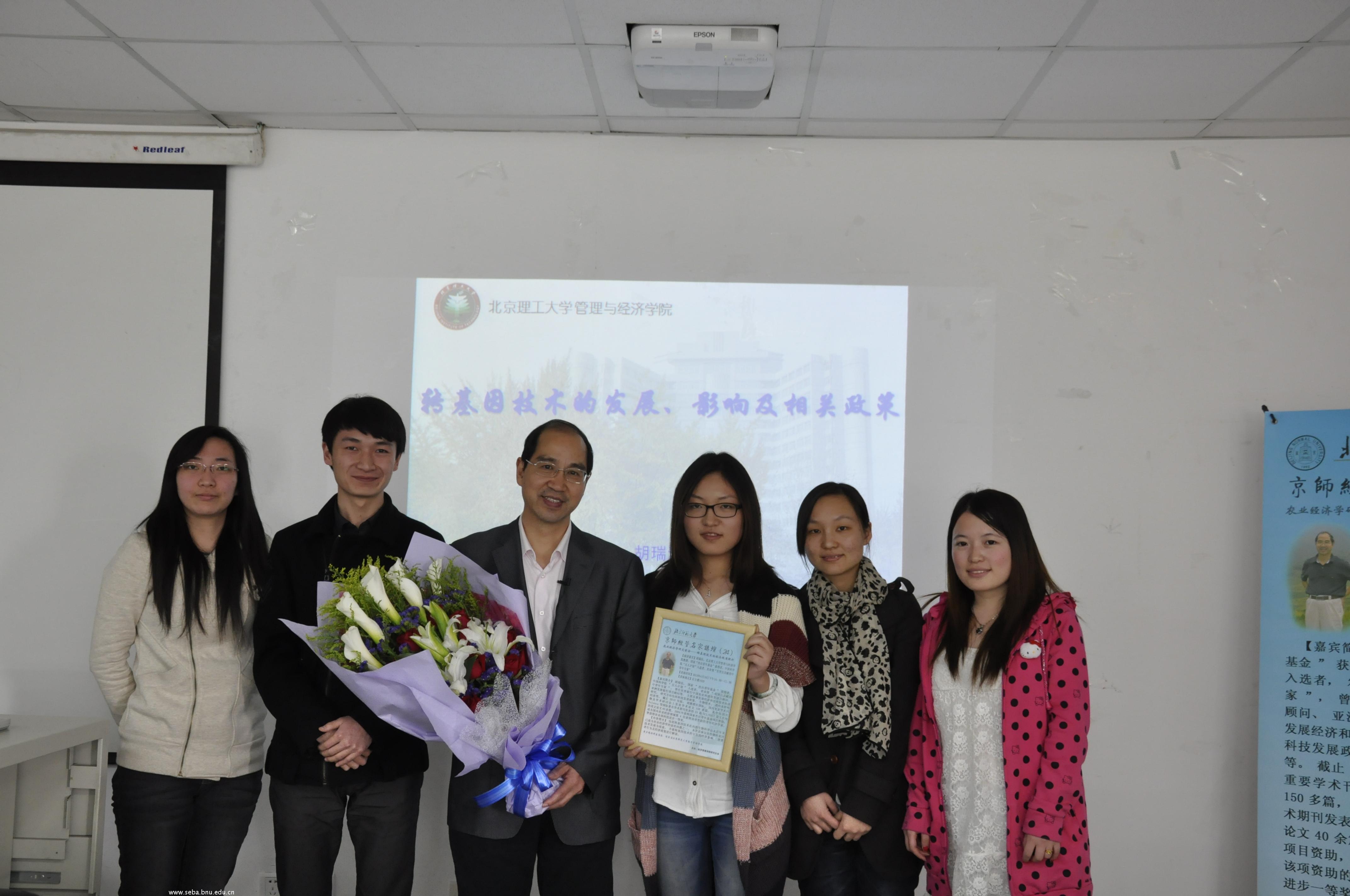 “百人计划”入选者,农业部“有突出贡献的中青年专家”,著名农业经济学家胡瑞法教授在后主楼1620教室做了一场精彩的报告。本次讲座题为“农业经济学研究前沿—转基因技术的经济视角探析”,即通过以农作物转基因技术发展为线索,对转基因技术所引发的经济影响、消费者行为及经济政策进行了解读。