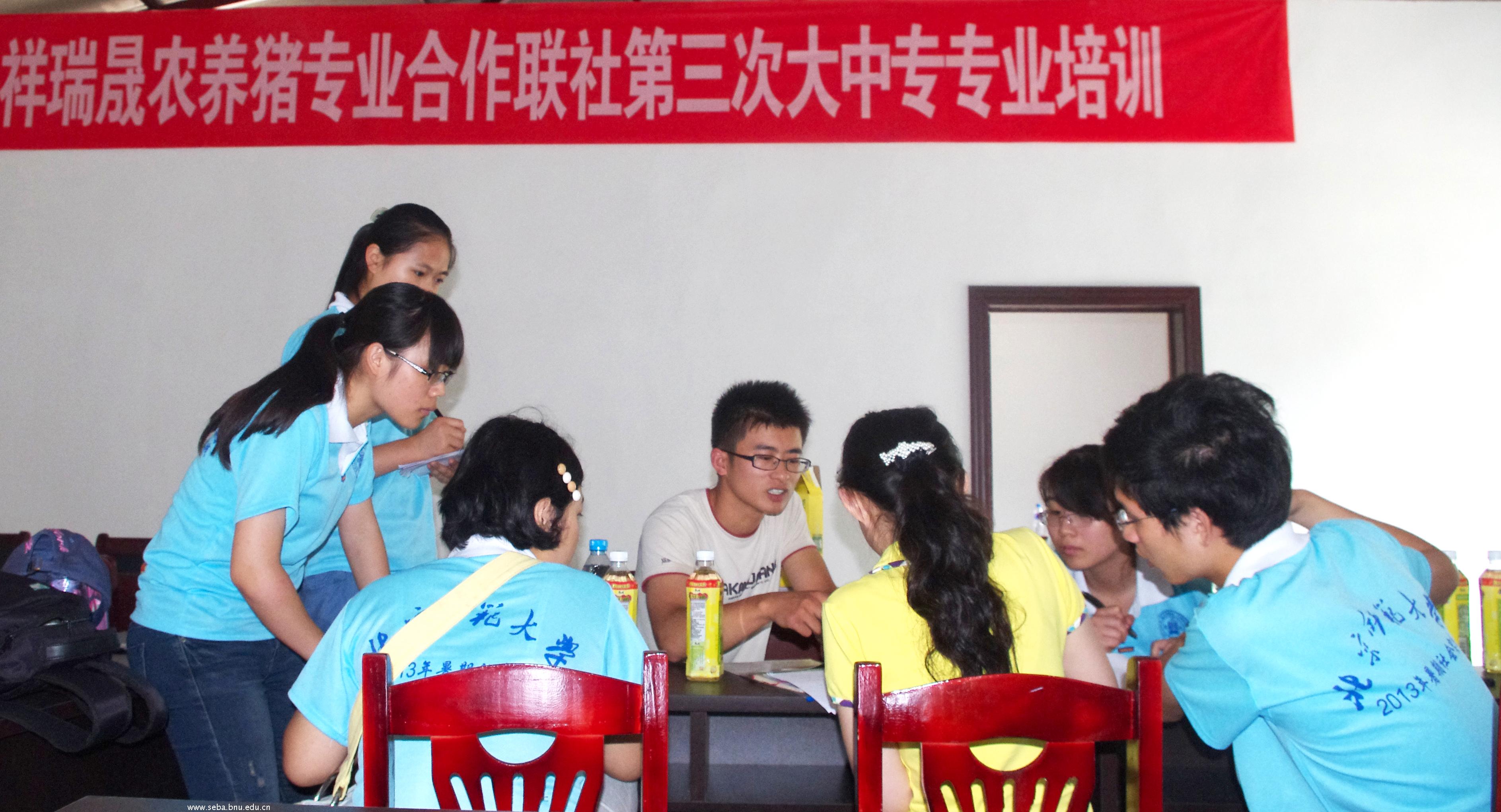 图3:北师大成人视频 暑期实践队在祥瑞晟农养猪专业合作社与社长交流